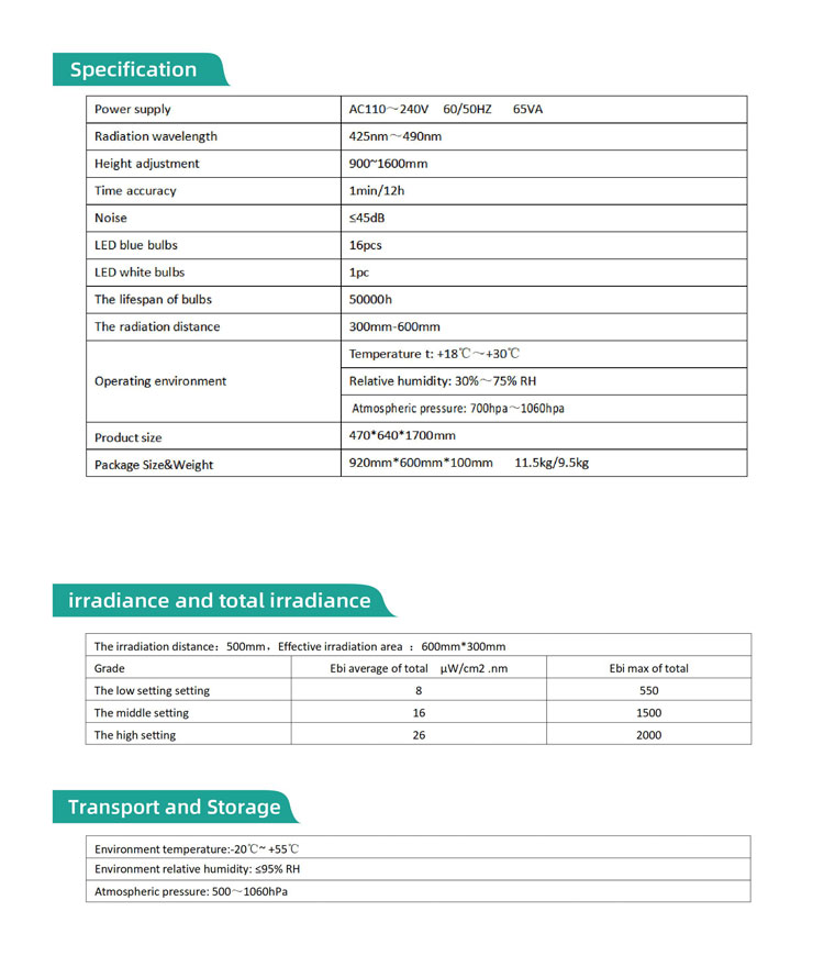 Irradiance intensity is adjustable in 3 grade : low, medium, high
